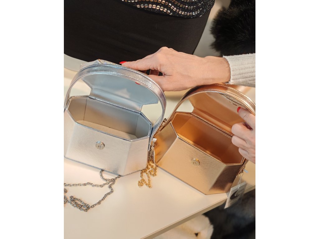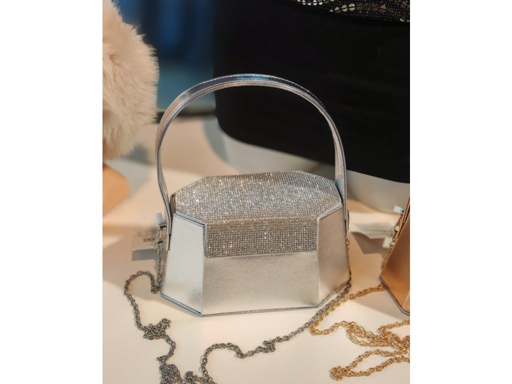 Součástí kabelky je řetízkový crossbody popruh.