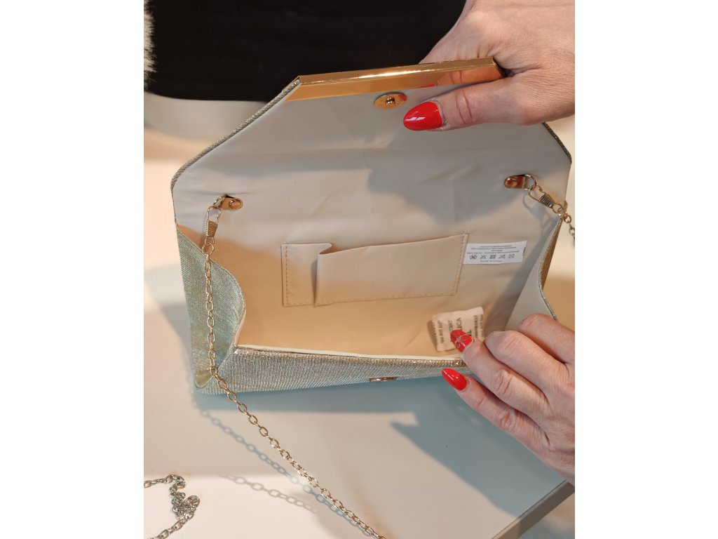 Součástí kabelky je řetízkový crossbody popruh.