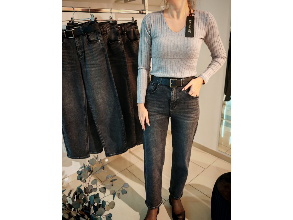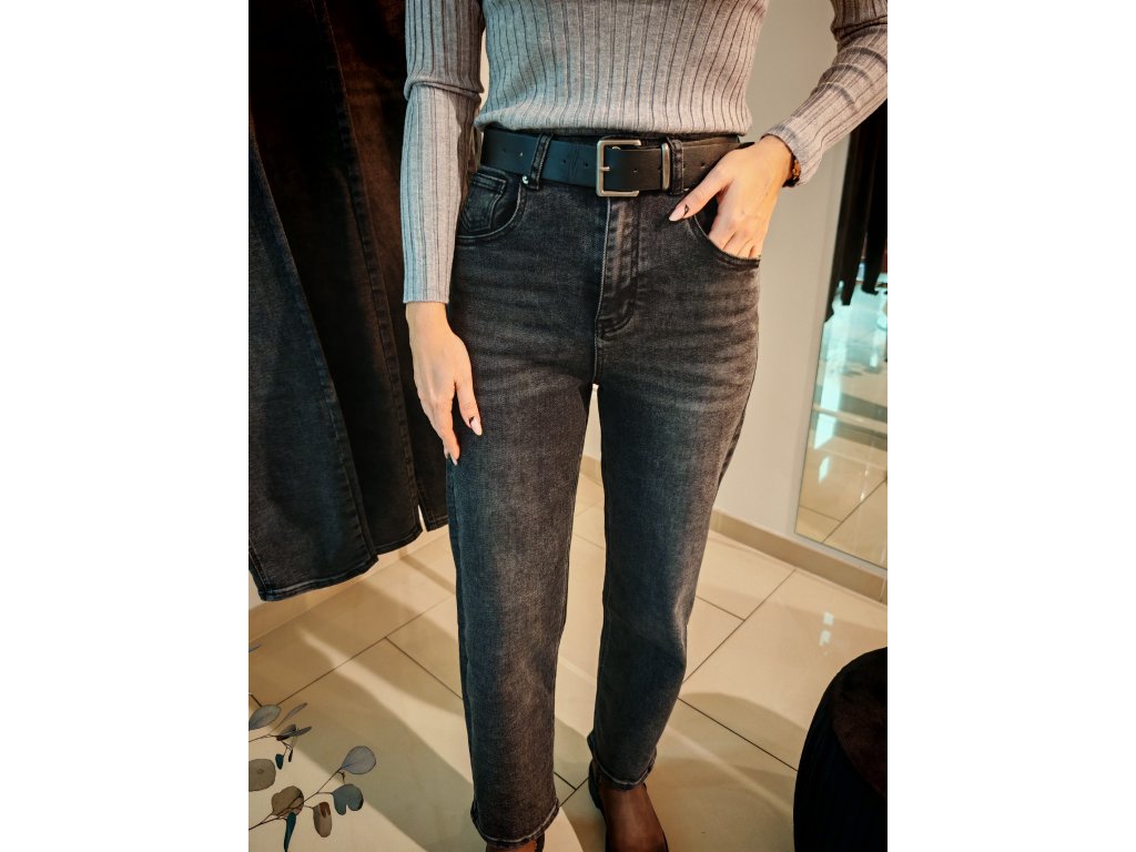 Šedočerné džíny ballon střih - moderní volnější střih